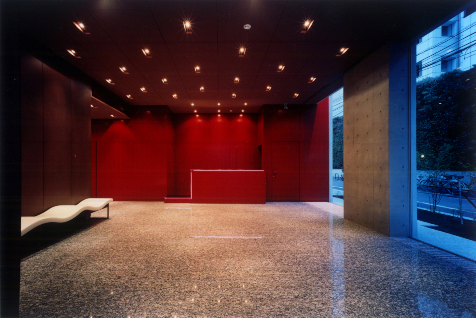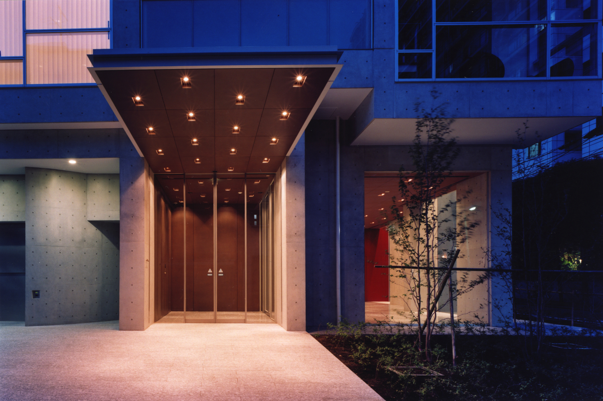 風景をつくる機会に恵まれた。近隣のホンダの本社ビルから緑を連続させるように、街並みを延長させた。2 つとも天空率を使い、敷地の前に空地を残し、平面は矩形