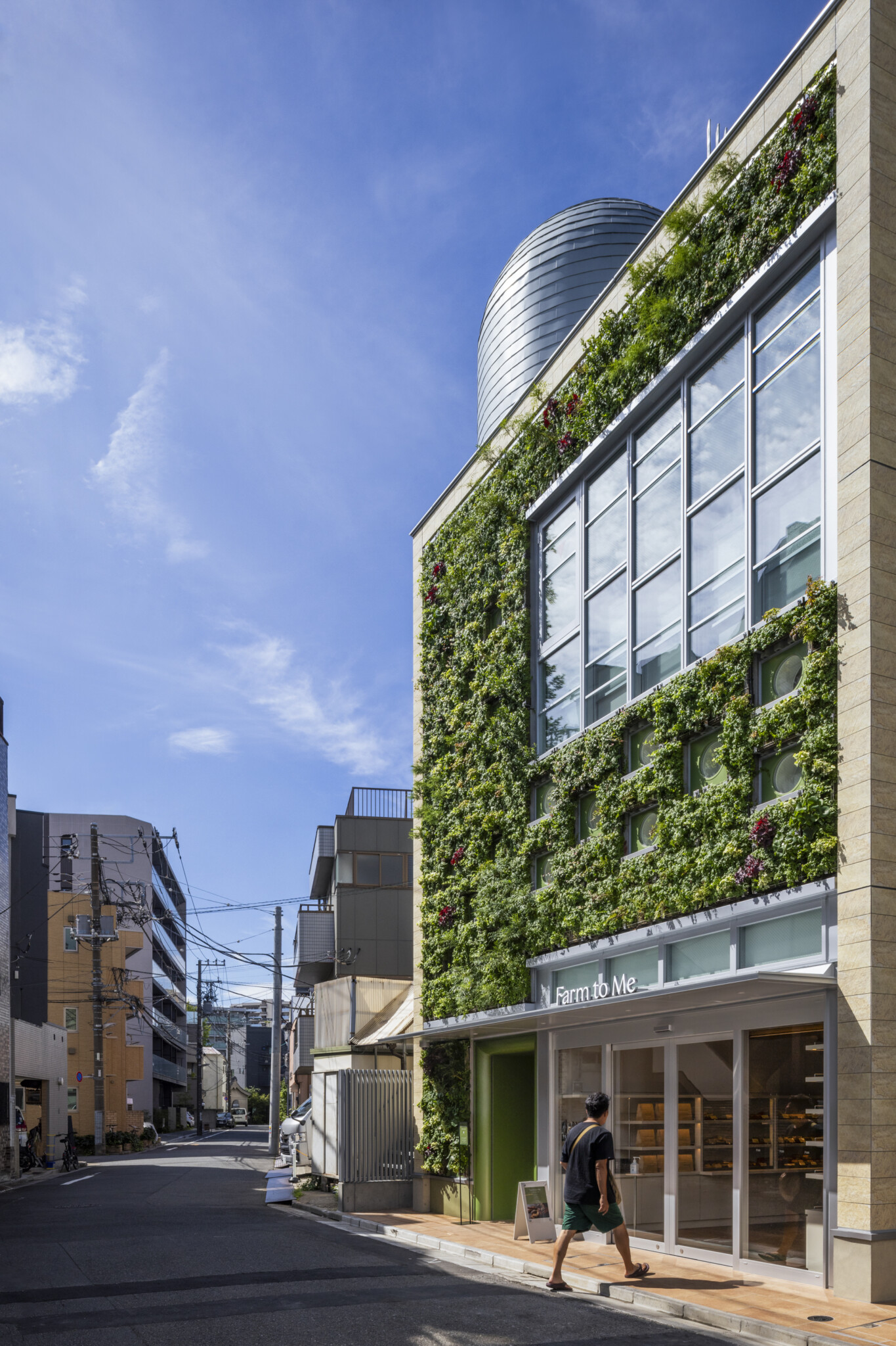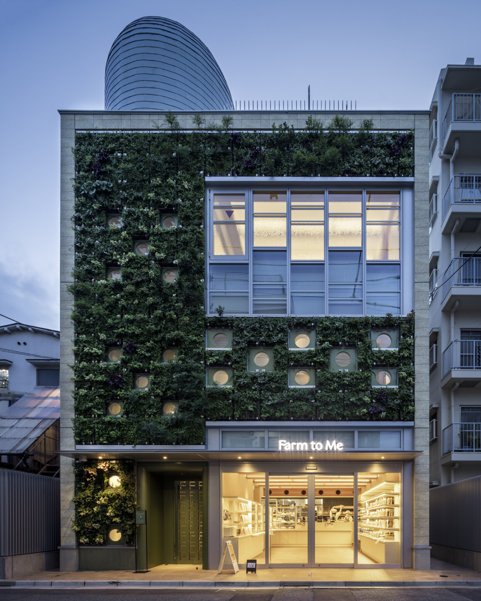 1つ目の建築はオフィスビルであるが、その時から一貫してバイオフィリアをテーマに掲げて自然との融合を図り、更に食を通して消費者と自然や産地(地域・人)との架け橋となる食の拠点を目指したFarm to Me ブランドの初出店、旗艦店となる本施設では、ブランドと深くかかわりのある種子島や自然を想起するような要素を各所に仕掛ける事で施設全体が Farm to Me の精神を発信する場所としての役割を担うよう考え次の様な提案をした。