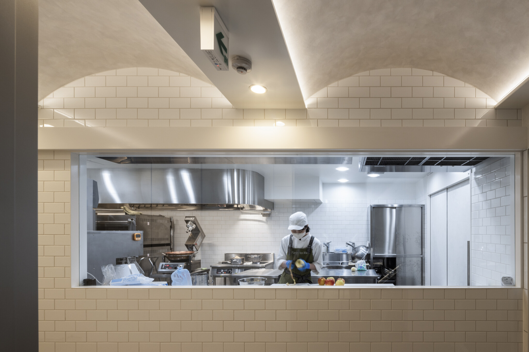 1 階がベーカリー、2 階がラボキッチン、3 階が隅田川を望むレストラン、屋上庭園となっている。クライアントは種子島に自社農園をもち、さとうきびの栽培を行う国内では数少ない製糖メーカーで、さとうきびの産業復興や環境保全を目的にラム酒の製造にも尽力しており、本施設は私たちがクライアントからの設計を依頼された2つ目の建築となる。
