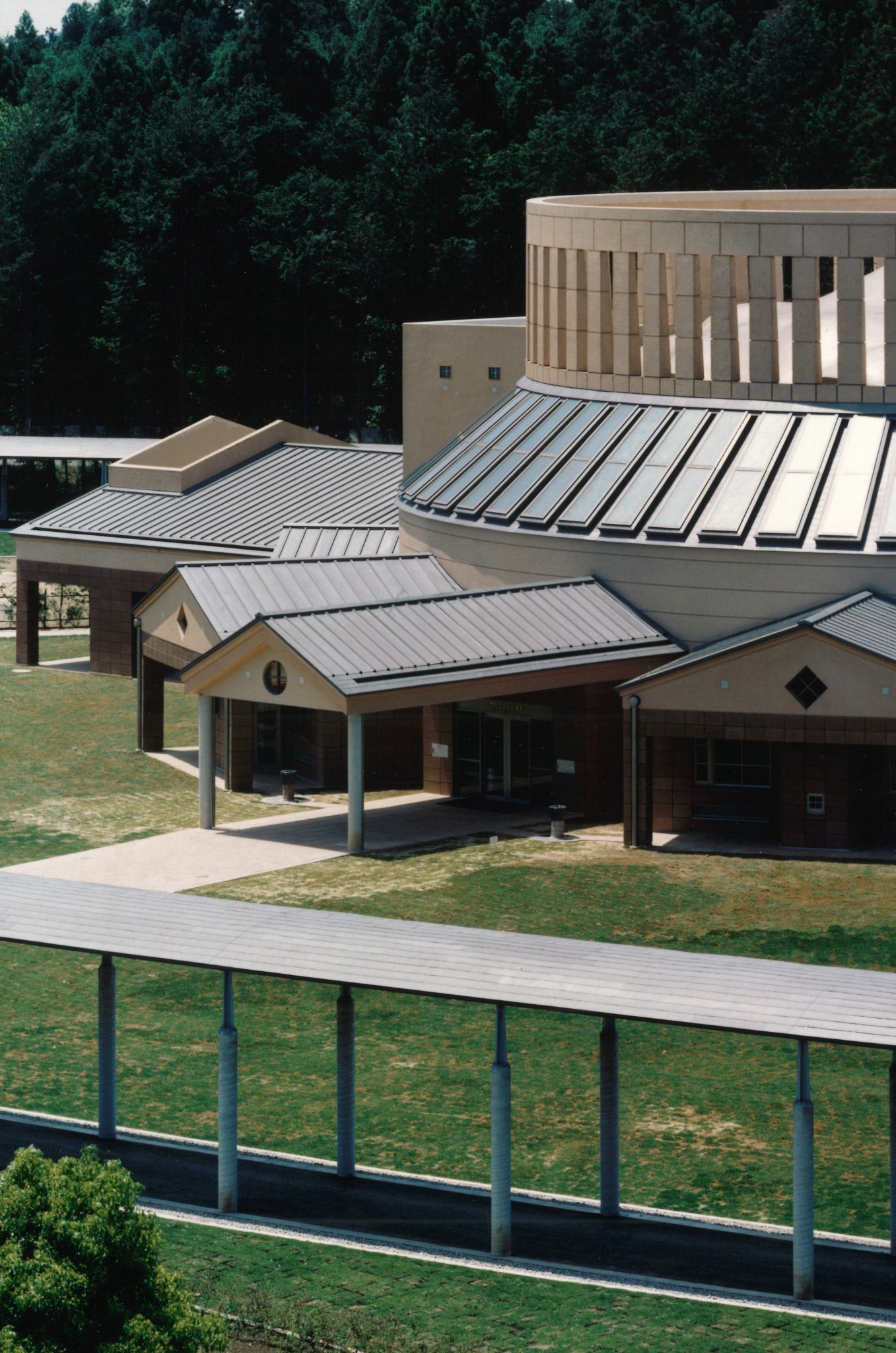 私たちは、図書館を通して、地域の文化を育てるという思いで設計に取り組みました。今や図書館は受験生の溜まり場、あるいは本の倉庫と化しており、箱型の画一的な図書館ばかりです。ここでは書斎やサロンの延長として、自然と人々が集まってくるような空間を目指しました。そのためには単純で複雑な平面、力強い断面、主張する部屋、くせのある空間の中の空間などが不可欠であり、それを意味づけるプログラムまたはコンセプトが必要であると考えました。天井はドームで覆われ、壁には本棚があり、ソファーが用意され、アットホームな雰囲気をつくりました。文化を育てるという思いは、建築家だけでなく、市長や館長も思いは同じでした。当時の佐川市長は、「目的意識を持ち機能的ですばらしい建物をつくりたい、今の子供たちに活字文化、読書文化をどう復権させるか、図書館という建造物への興味から子供たちを引き付け散歩がてらに行きやすいかということを観点にして人選する」という思いで、私たちを設計者に選びました。建設中には、「水道をひねっても文化は出てこない。水戸市は下水道の整備も行うが、文化の整備も行う。」と言い、文化を創ることに積極的でした。「完成した図書館を見て、「子供たちの図書館として素晴らしい物ができました。」と仰っていました。初代山田館長は、図書館の完成の日に「建物は建築家が作るが、育てるのは僕ら、水戸市民だ」と市長の下で働く人も「文化を創る」ということに燃えているのだと思いました。今でもその思いは役所や市民の方に受け継がれ、今でも多くの市民に利用いただいている図書館となっています。