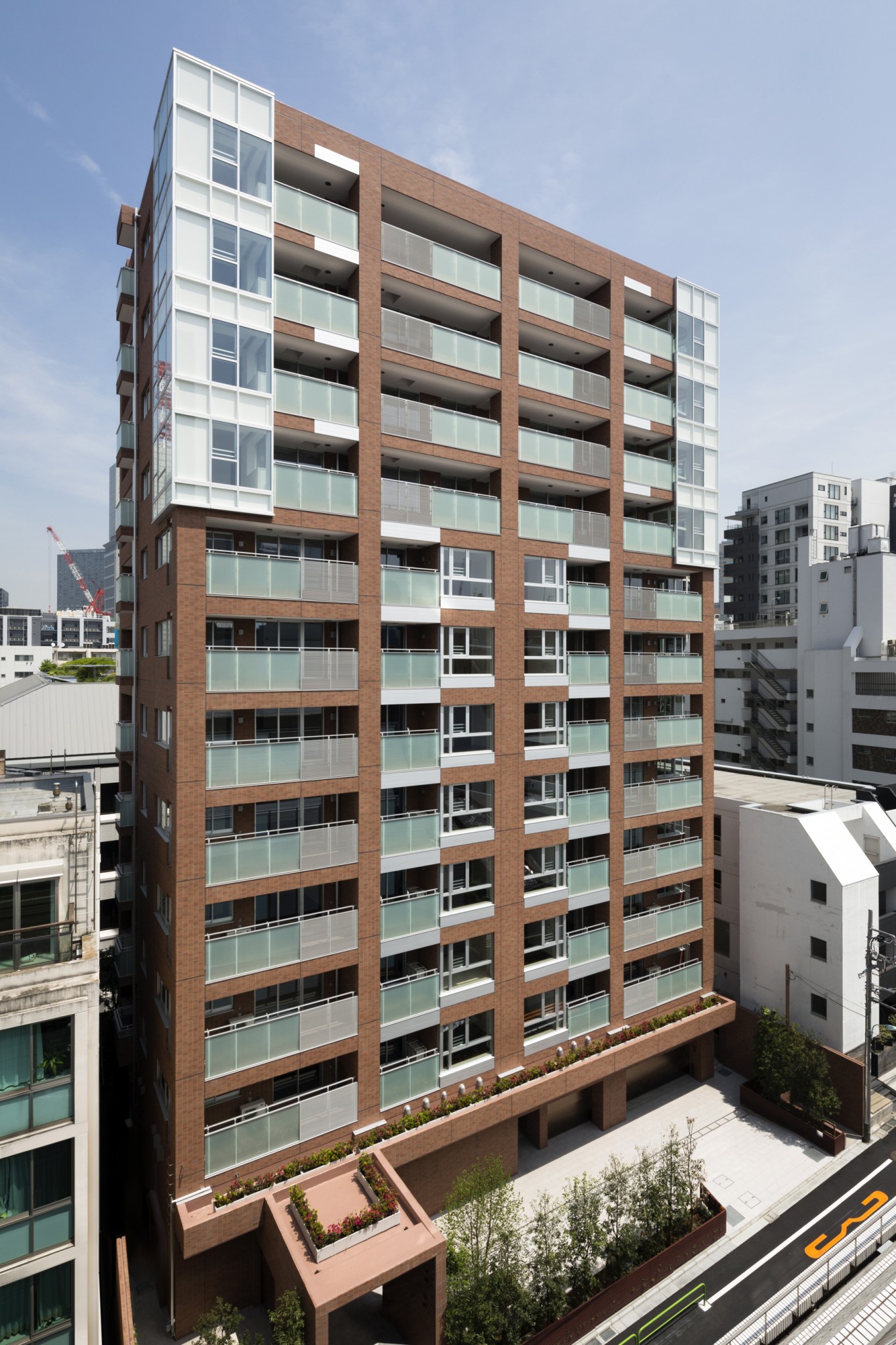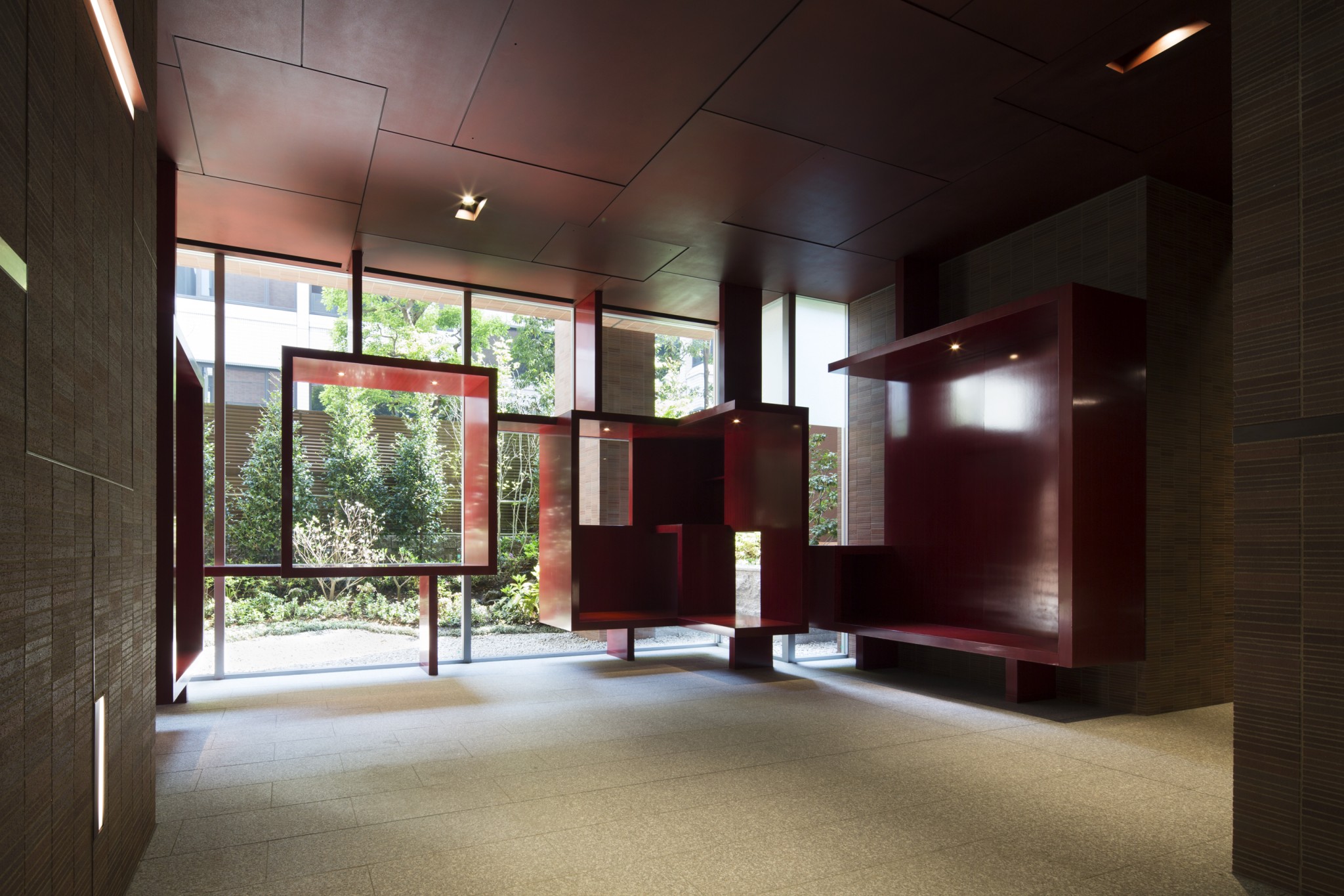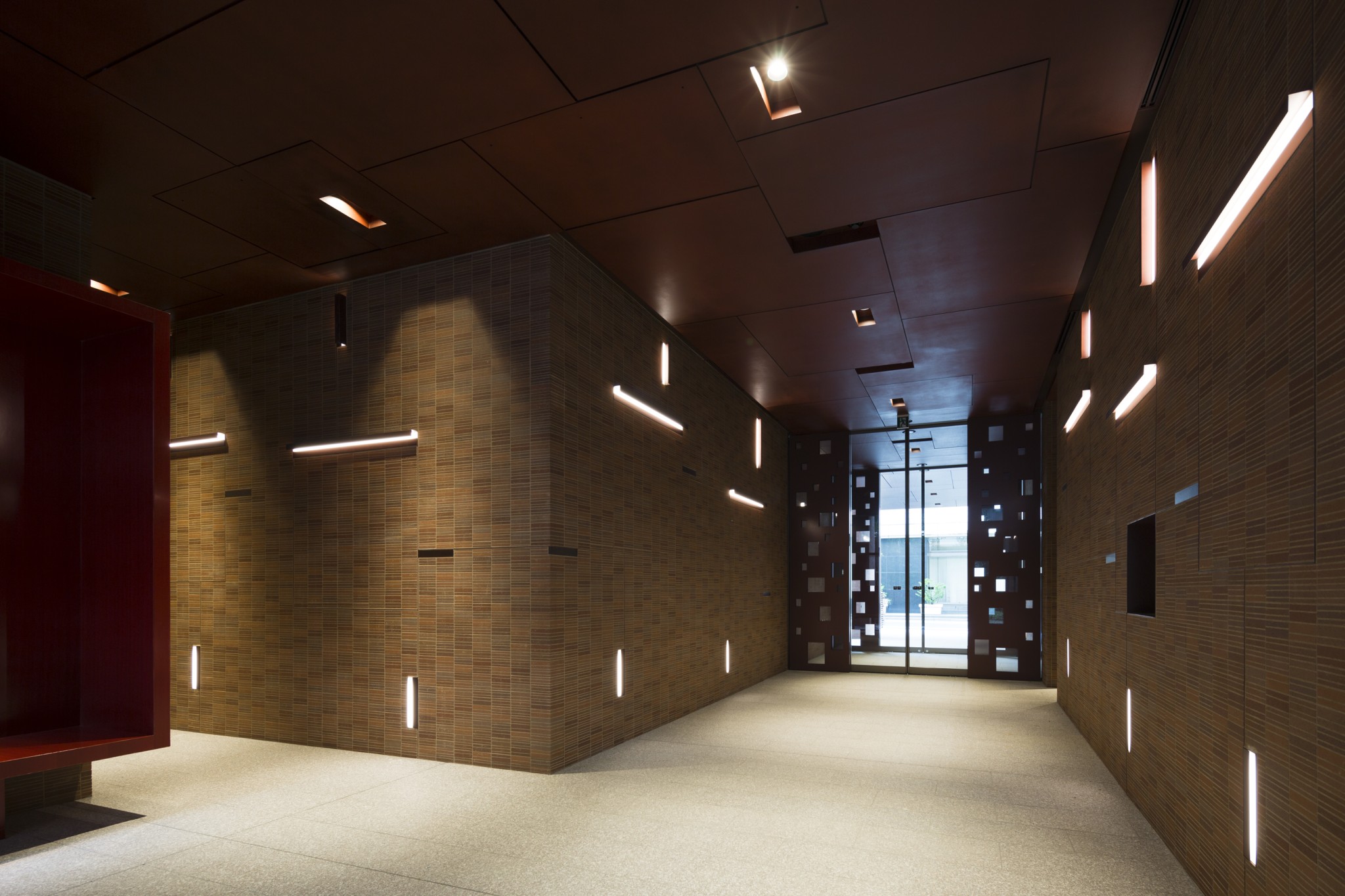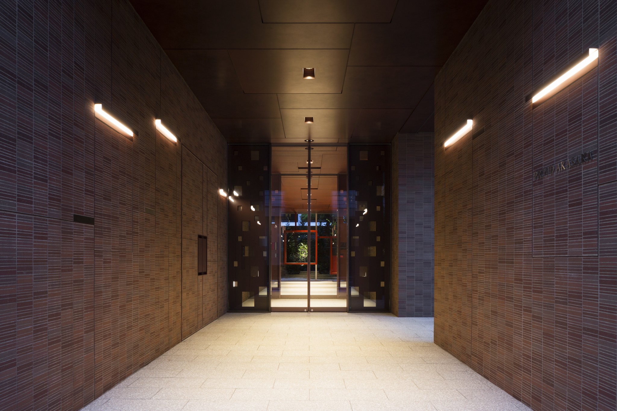 外観を印象付けるタイルについては、納得のいく色が出るまで半年以上かけて何度も焼き直し、ここにしかない、この地に相応しい赤坂色となっており、風合いに拘ったブラウン色の目地もそれを引き立てている。
