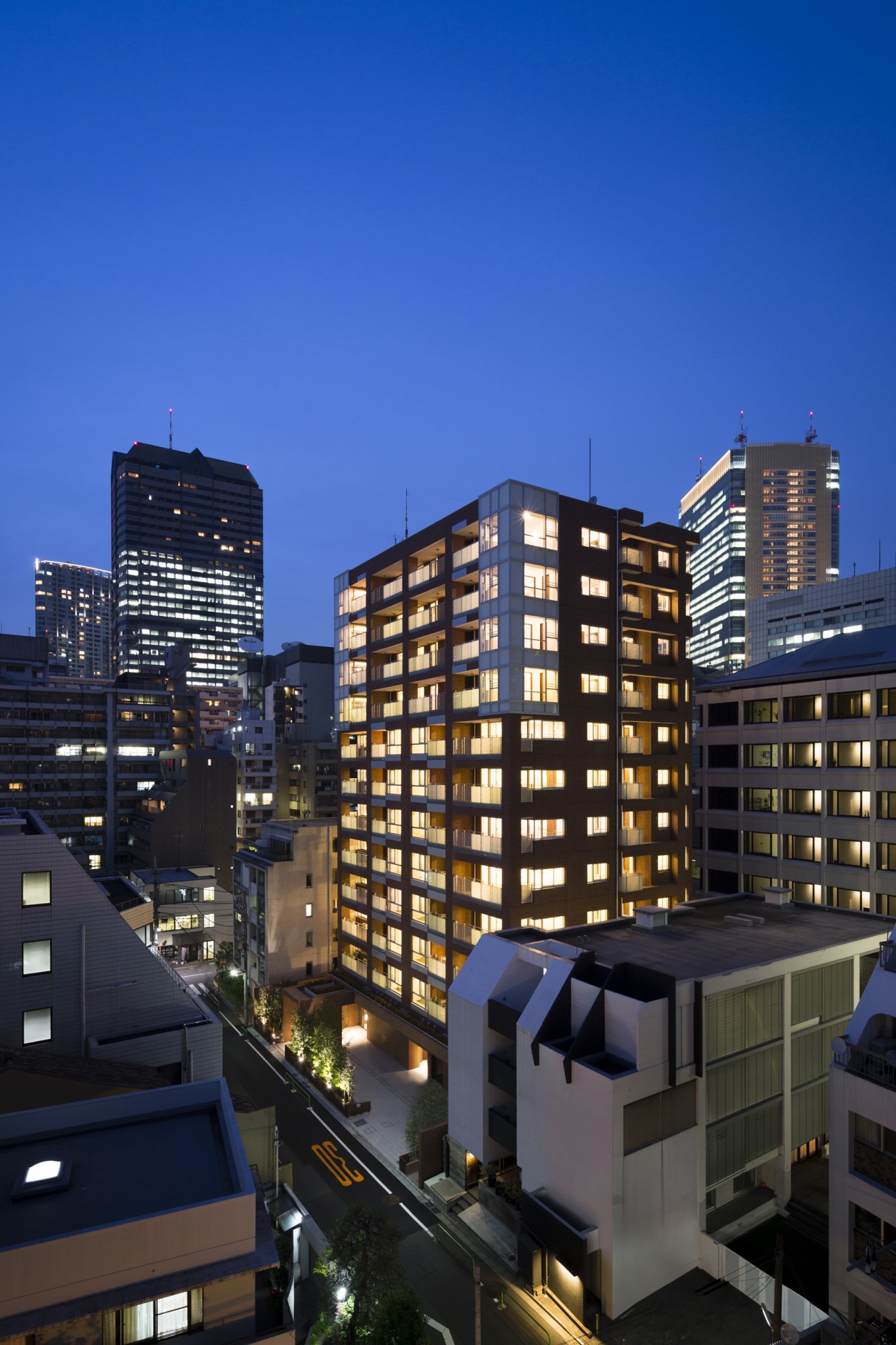 総戸数は40戸。少ない住戸数でありながらも、1LDK~3LDKの8タイプ。共用部にPSを集約し、SI(スケルトンインフィル)構法を採用することで、将来的な更新の際に専有部内に立ち入る必要のない計画としている。また、水周りのオーダーメイドにも対応し、赤坂に暮らす人々の様々なライフスタイルの要望に応え、提案している。