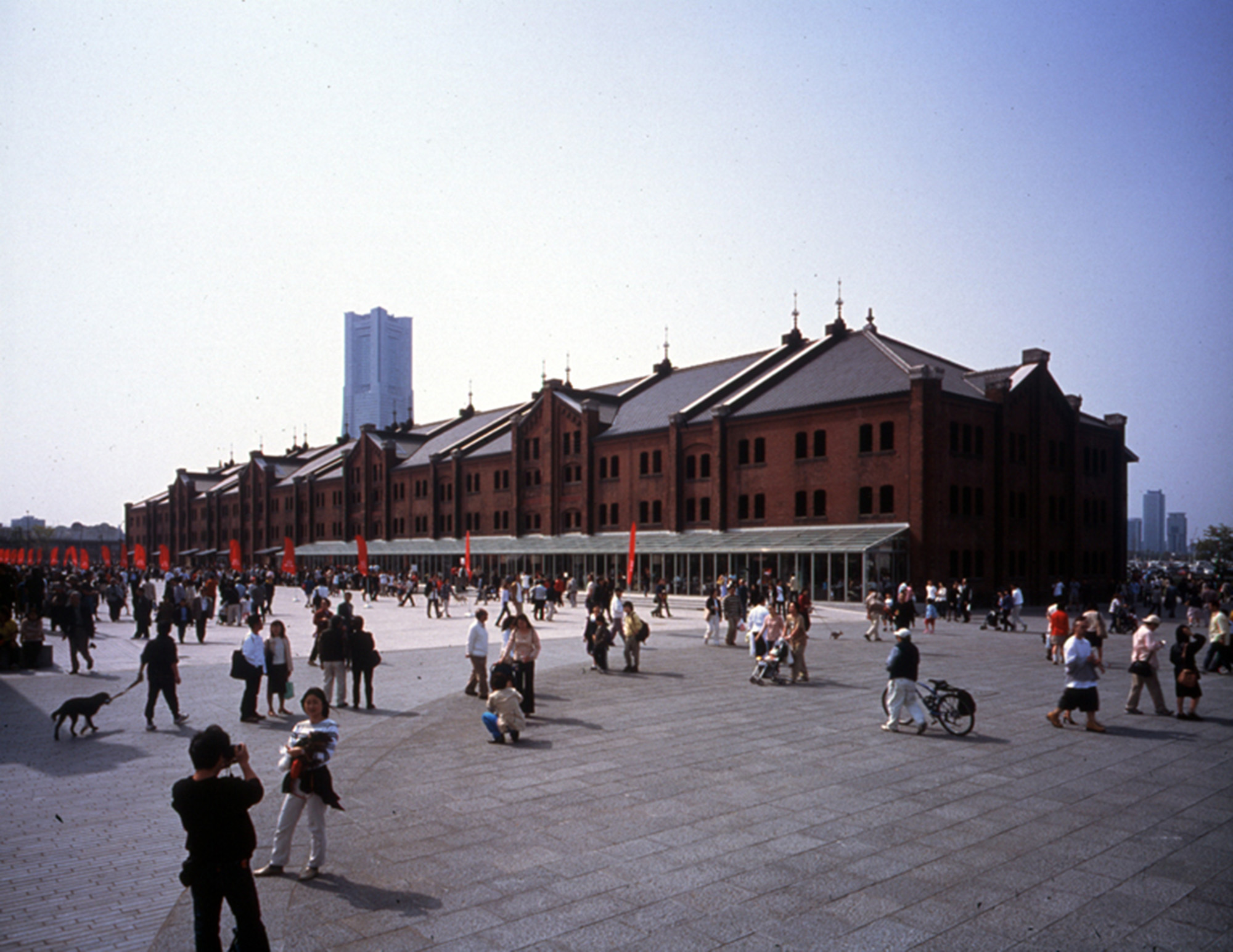 横浜赤レンガ倉庫は、明治末期の大蔵省臨時建築部部長妻木頼黄の設計による当時の国の模範倉庫で、一部の建築資材や機器等を海外調達し、最先端の港湾施設実現に向け技術の粋を集めた組積造建築の完成型といえる建物です。関東大震災で2棟のうち1棟が半壊したため大規模な修復を行って利用を継続し、戦禍を生き延び米軍の接収・返還を経て倉庫本来の機能は昭和50年代の後半にほぼ終了しました。本プロジェクトは、明治時代の大建築家妻木頼黄の赤レンガ倉庫を、保存を一歩超えて、積極的に活用して保存していくというものでした。平成5年からの保存工事に続いて平成11年より活用工事プロジェクトが開始され、2002年4月に1号館は劇場・ギャラリーを持つ公共施設、2号館は民間事業による商業施設として生まれ変わり、横浜の新たな文化拠点となっています。私たちは1、2号棟の設計監理と、2号棟の事業提案の時点で3社の企業グループに参画し、最終的に商業施設としてのコンセプトづくりから、内装設計指針、デザインガイドラインの作成まで携わりました。2号棟は、公共団体が民間企業体に倉庫を貸し付け、活用工事から任せており、ある種のPFI方式の保存活用工事といえます。現在、オープン当初の予想を大きく上回り、1号棟では約90%以上の稼働率、2号棟では年間約700万人の人が訪れています。